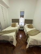 Habitación con dos Sommier de una plaza, respaldos, mesa de luz y placard con interior nuevo. Salida a patio mediante puerta balcón. Cortinas Hunter Douglas